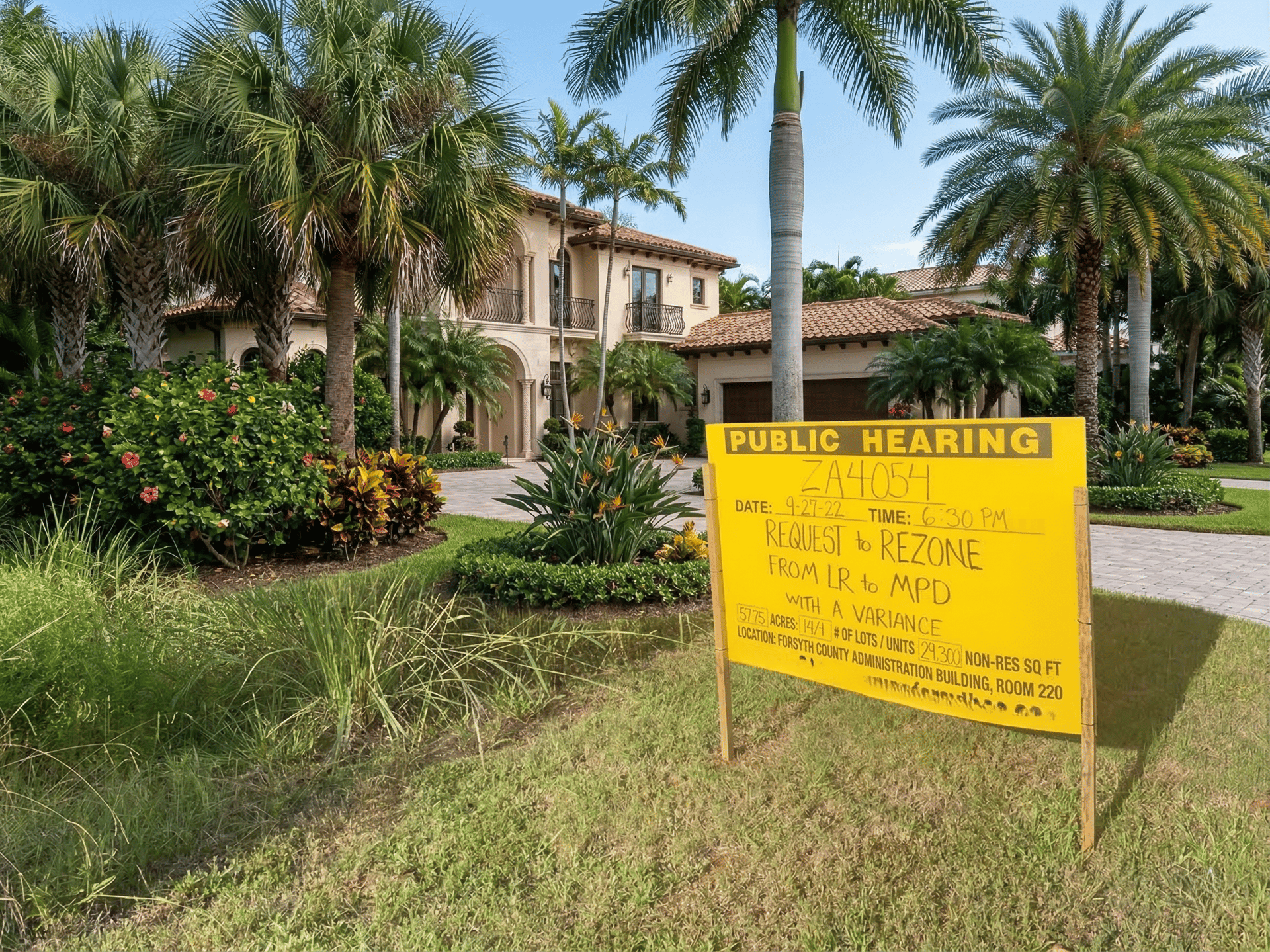 Anyone who has walked or driven through downtown Boca Raton recently has seen them: bright yellow Public Hearing Notice signs posted in medians, lawn areas, and planter boxes from Camino Real down to Federal Highway. Near the graceful curve of East Royal Palm Road, within a hundred yards of the old Boca Raton Resort entrance, multiple signs appear within eyeshot of each other — each one representing a separate development project in the approval pipeline.